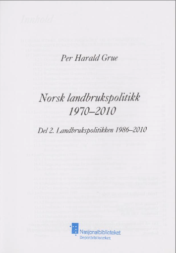 Per Harald Grue skriver i forordet til boka at han med dette arbeidet har skrevet sin versjon av norsk landbrukspolitisk historie for perioden 1970-2010. Hans bakgrunn i perioden har vært (1) som politiker og embetsmann i Landbruks- og matdepartementet, (2) som landbruksøkonom og forsker og (3) hans mer personlige bakgrunn og oppvekst.