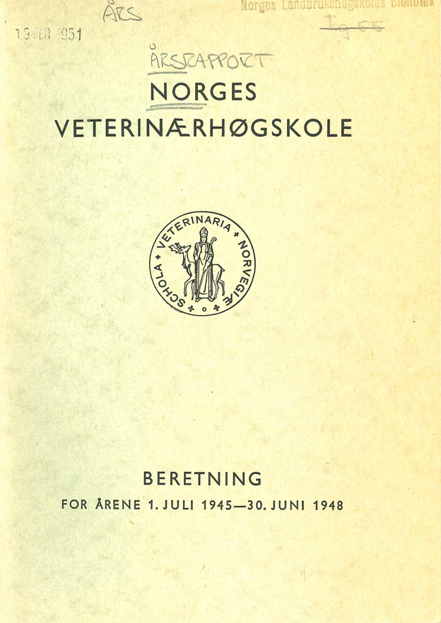 Omtale av årsberetningene 1945-1948 ved Norges veterinærhøgskole (NVH).